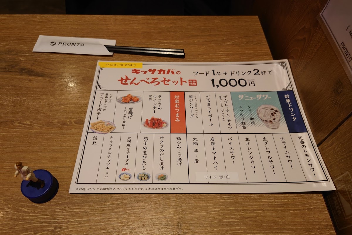ザ・プレミアム・モルツ 香るエール / 角ハイボール / 角ざくろ / 角ピーチ / 角ジンジャー / ジムビームハイボール / ビームチェリー / ビームアップルパイ / ビーム紅茶ハイ / 丸ごとすりおろしレモンサワー / 定番のレモンサワー / 無糖生絞りレモンサワー / バイスサワー / 翠ジンソーダ / 岩塩トマトハイ / JJ(ジャスミンハイ) / カシスオレンジ / カシスウーロン / ワイン(赤・白) / 大隅(芋・麦) / オールフリー / ジンジャエール / ブラッドオレンジジュース / ウーロン茶 / 珈琲(ホット・アイス) / 紅茶(ホット・アイス)