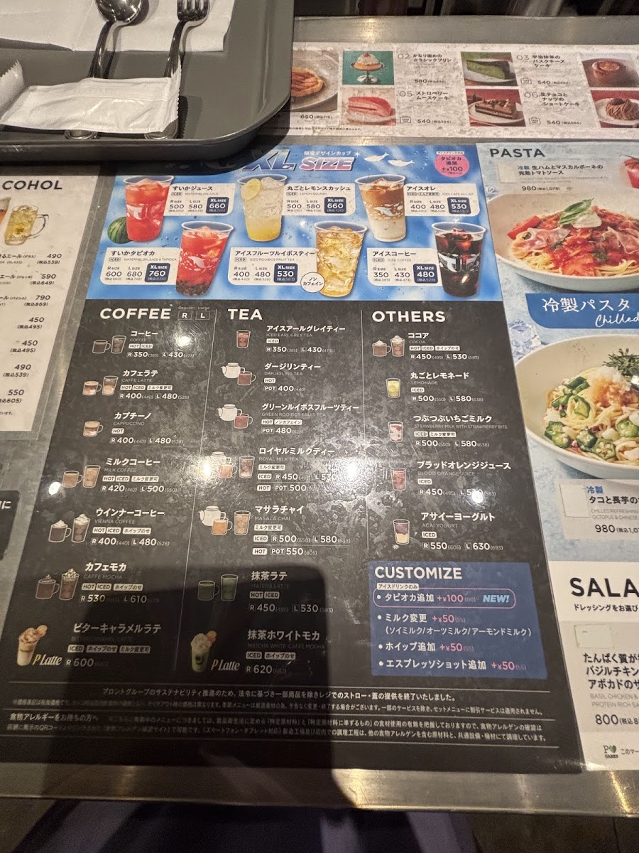 ・HOT ココア:Cocoa Regular440円, Large:528円 ・ブラッドオレンジジュース Blood Orange Juice:Regular:495円, Large:583円 ・つぶつぶいちごミルク Strawberry Milk with Strawberry Bits:Regular:495円, Large:583円 ・アサイーヨーグルト: Acai Yogurt:Regular:605円, Large:693円 ・丸ごとレモネード Lemonade:Regular:495円, Large:583円 ・アイスココア Iced CocoaRegular:440円, Large:528円